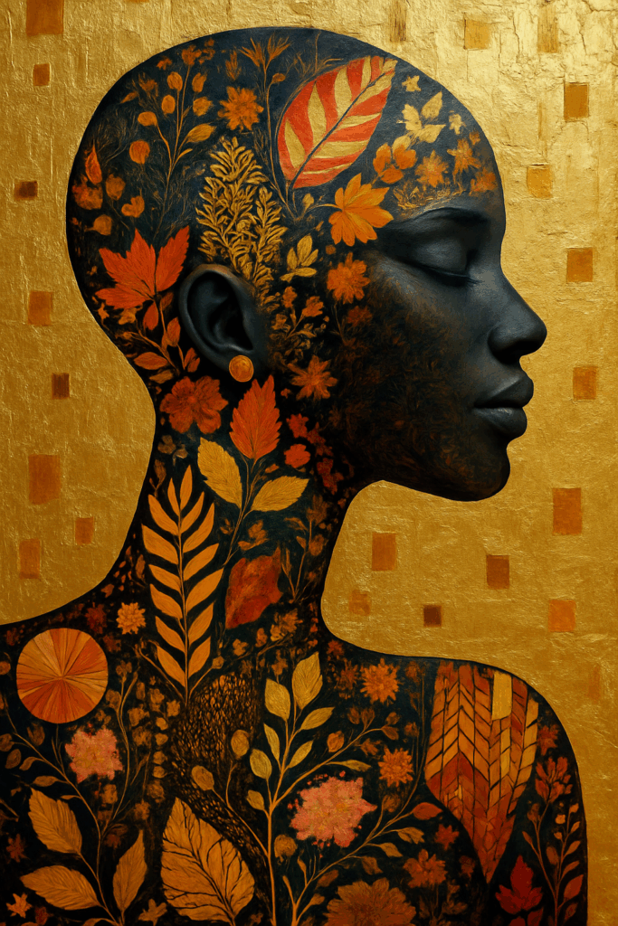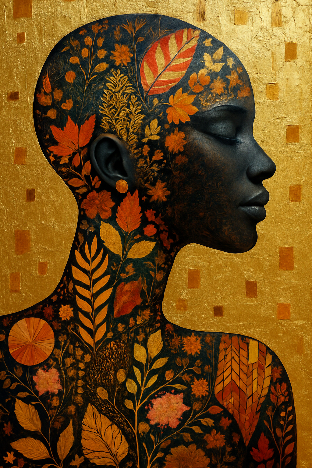 „Die Magie verborgener Augen: Eine Frau in Acryl und Goldblatt.“
