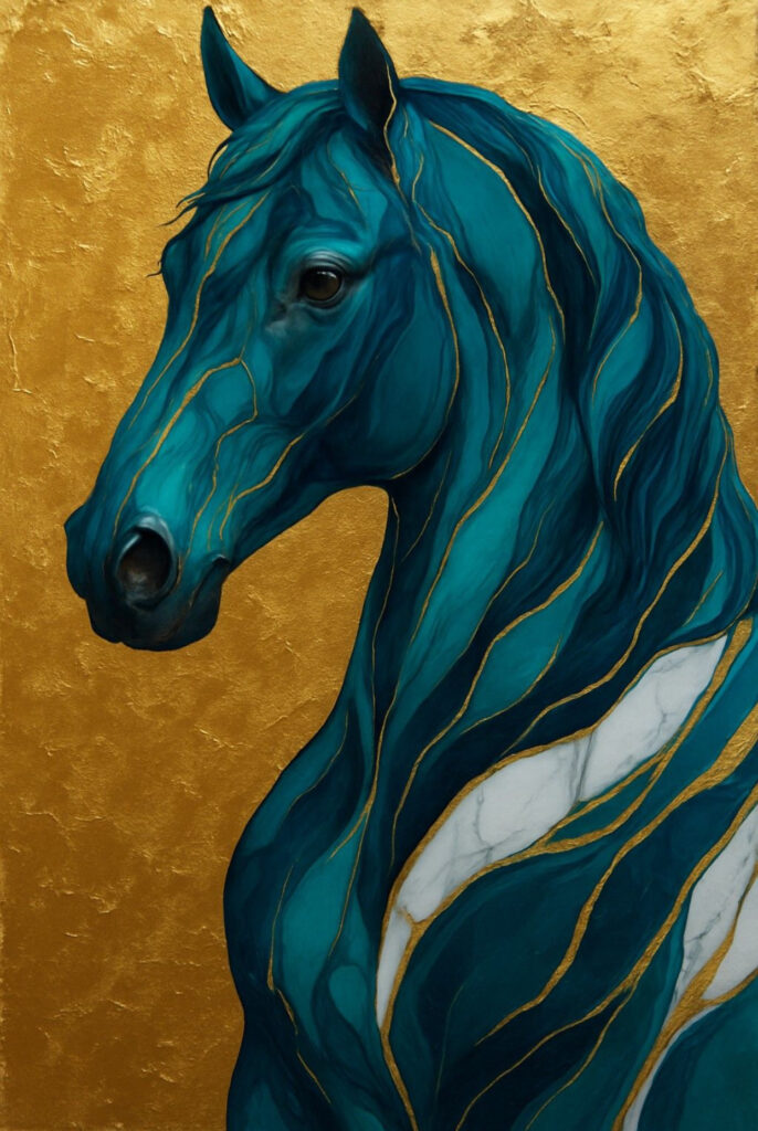 „Die faszinierende Verbindung von Kraft und Eleganz: Pferde mit Goldblättern.“